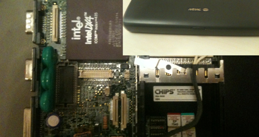Three or four weeks ago, I found this old laptop, a "MITAC" with an 100 MHz Intel DX-4 CPU, a harddisk with less than a gigabyte storage capacity and a dead battery. It still displayed the startup screen after switching it on - a memory counter checking the 32 megabytes of RAM in the device, but couldn't find a boot disk. Obviously, the harddisk was broken.